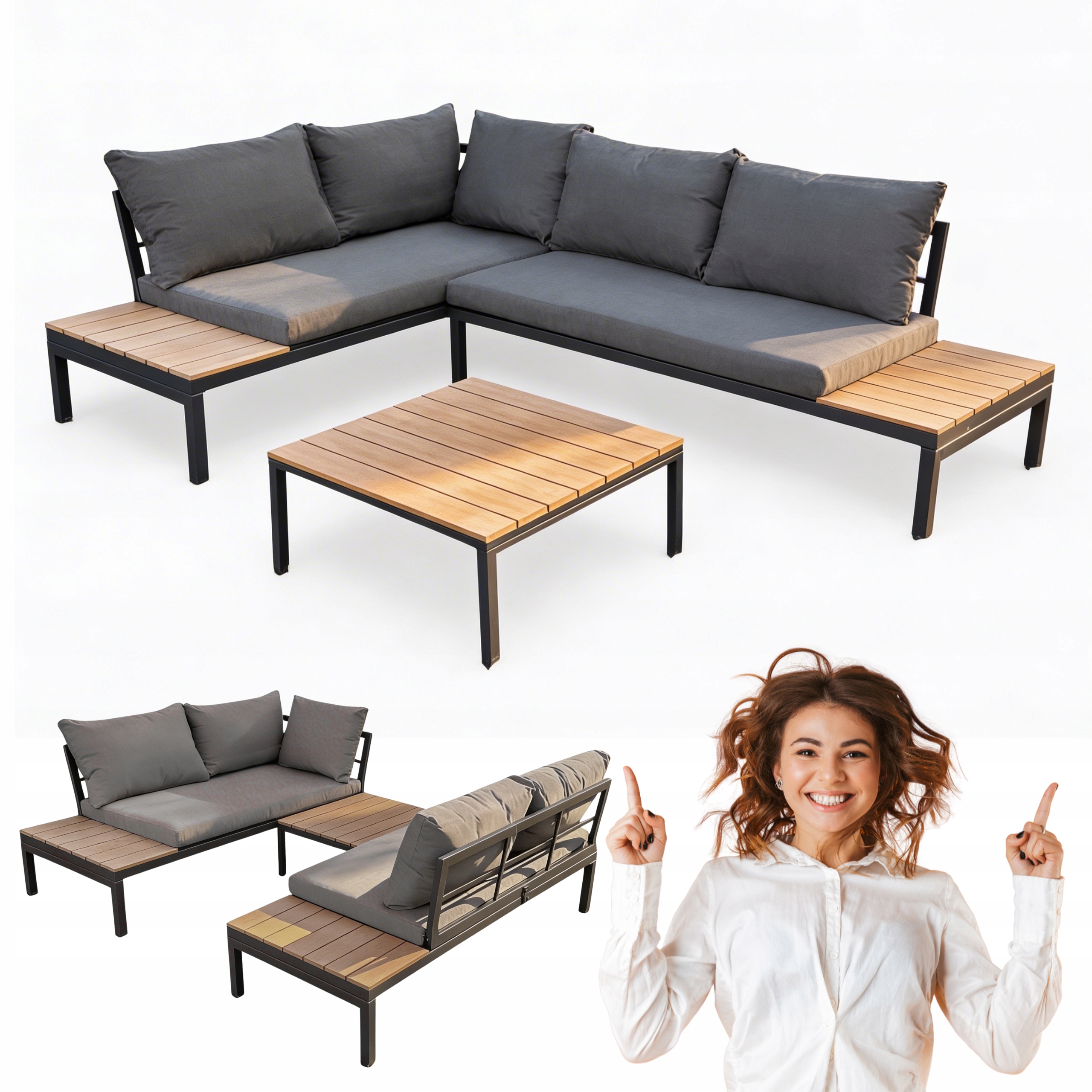 ⭐ Możesz korzystać z niego jako narożnik lub rozłożyć go, zamieniając narożnik dwie sofy i stolik.