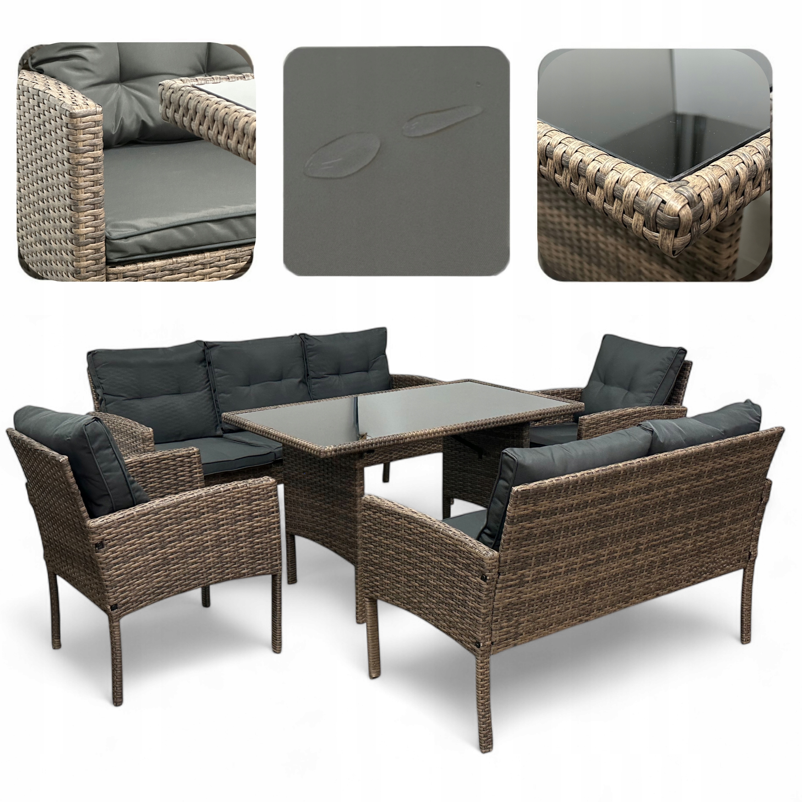 ⭐ Brąz jasny Technorattan + Szare Poduszki